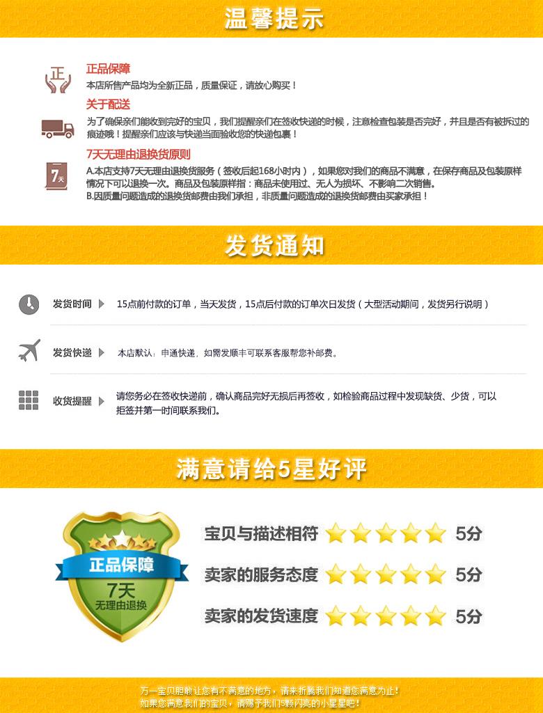 3. 顾客需选择快递方式将商品寄回,并支付快递费用,本商品退货不接受平邮或以到付形式寄回包裹。