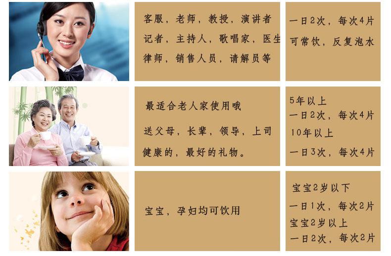 成人每天选4-5片,可以反复泡3次,分别为早中晚各加一次水约200毫升左右,饭后一小时为佳 ,开水温开水都可以,每次泡三至五分钟,泡太久会太浓就会更苦。小孩用量及水量减半,幼儿一片加水量为20毫升左右。老人大人小孩我们也会放上详细的使用说明书