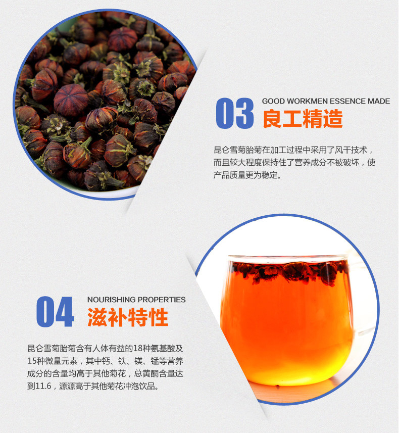 商品名称:精选媲美雪莲的养生圣品野生昆仑胎菊 特级(新疆巴音郭楞蒙古自治州)