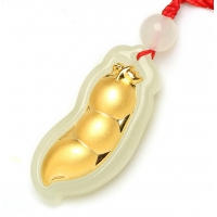 3D足金999镶天然和田玉四季豆 镶天然玉髓富贵豆