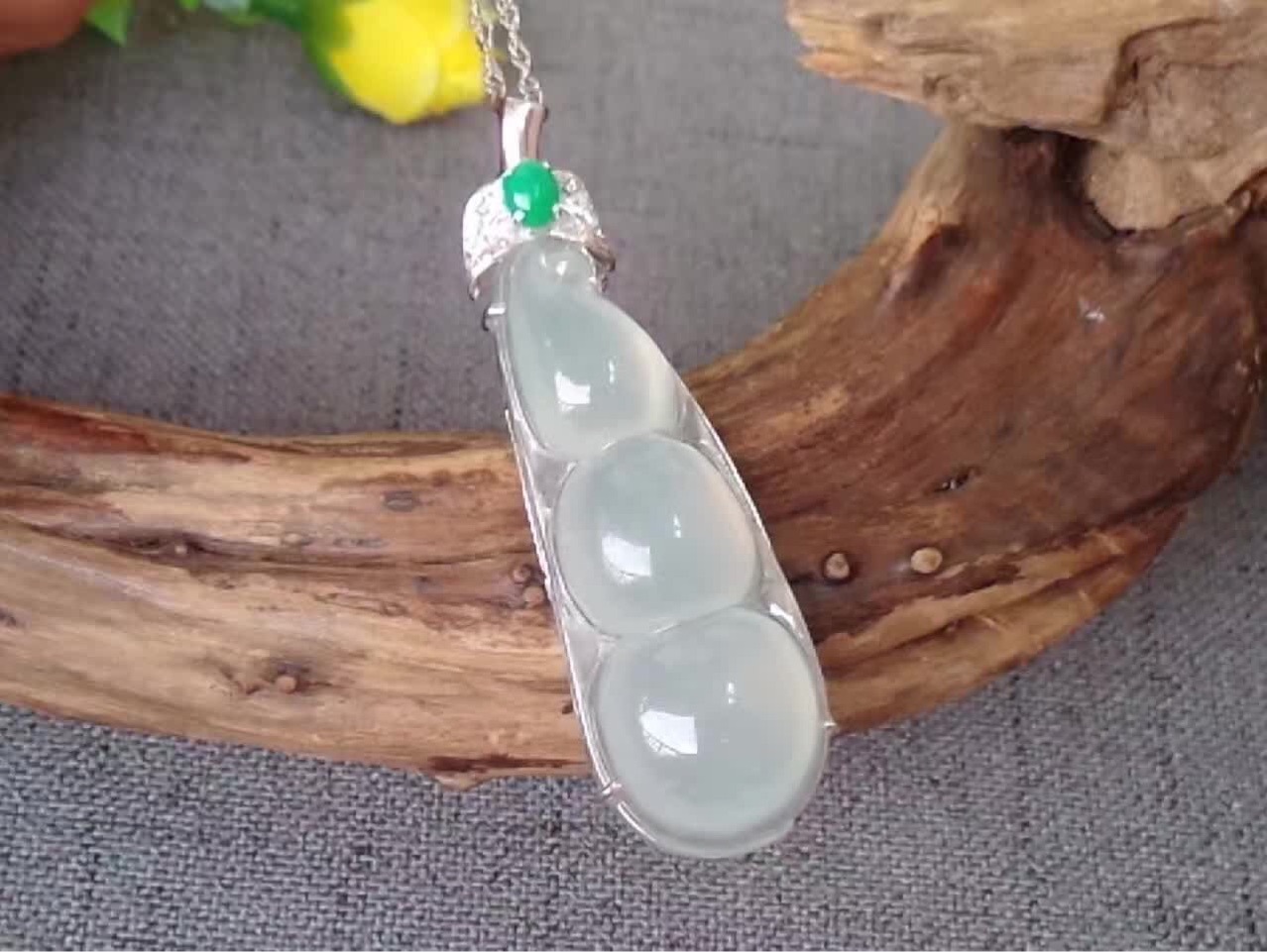 天燃翡翠玉石 平安四季豆 A货翠玉豆种 平安玉四季豆 吊坠