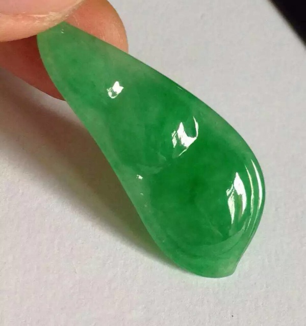 翡翠a货 四季豆 木那料 高冰 起光 雪花�� 精致 镶嵌佩戴 效果佳
