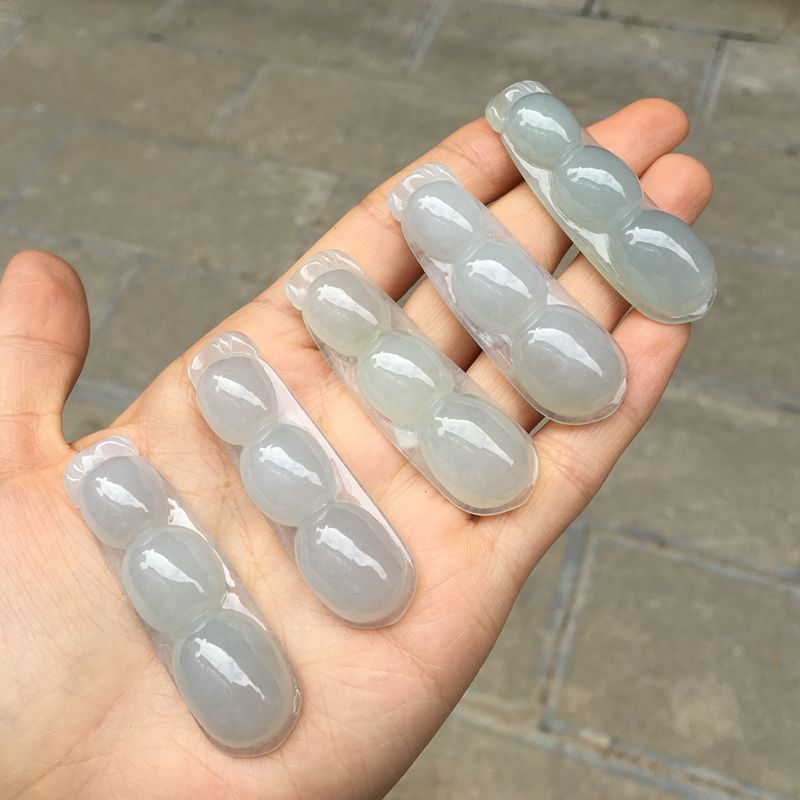 缅甸翡翠冰种四季豆 冰孺种四季豆 四季发财挂件 广州四会玉批发