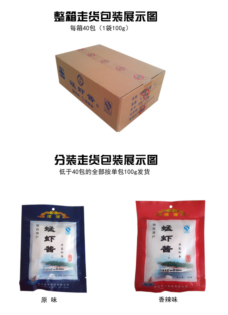 商品名称:山东自制原味香辣味蜢子虾酱 鲜虾酱 虾肉酱 蠓子海鲜酱 100g