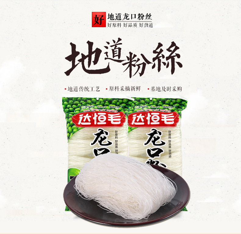 商品名称:达恒毛 山东龙口粉丝320g 豌豆绿豆粉丝 方便细粉条 一件30袋