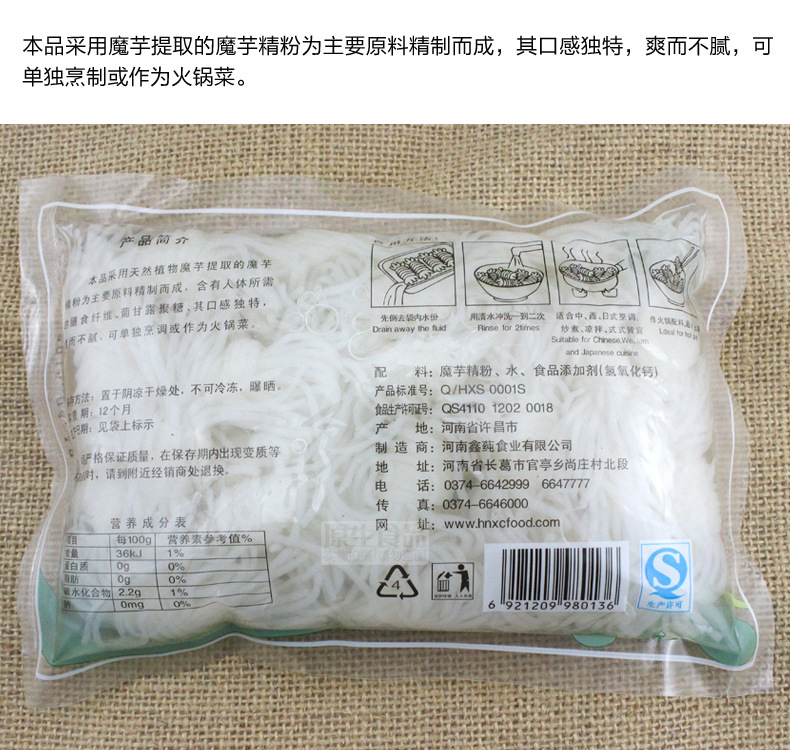 商品名称:批发供应 鑫莼魔芋粉丝 魔芋结 魔芋面条低卡低热量素食代餐500g