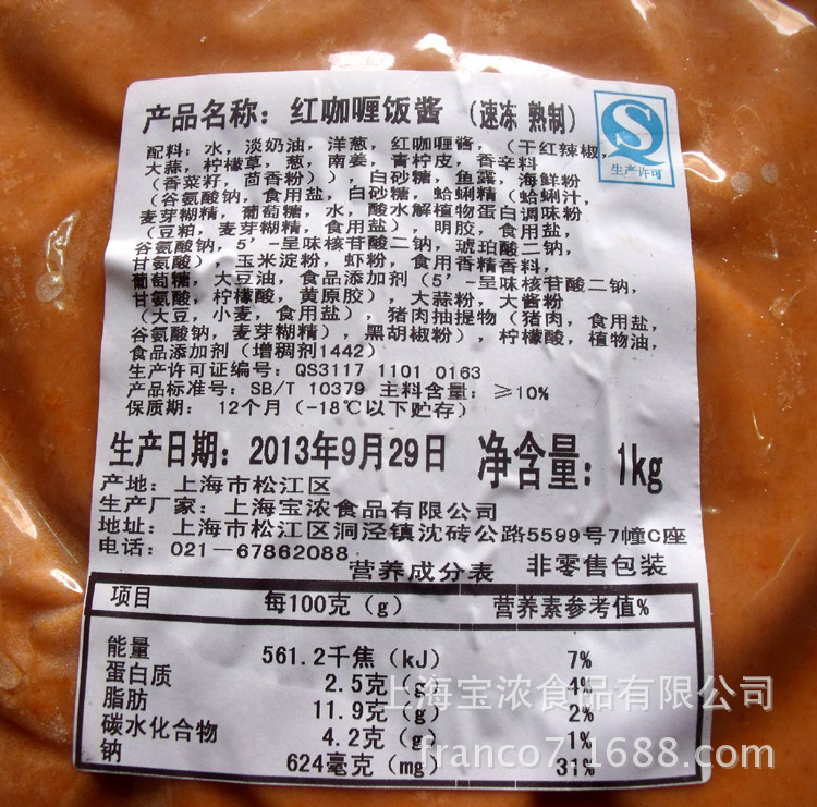 商品名称:供应红咖喱酱料 食品工厂 速冻食品 西餐精选 可OEM代加工