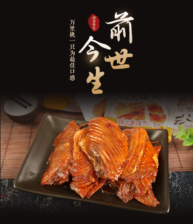 商品名称:湖南特产 水产品零食 洞庭姑娘黄金鱼翅 26g香辣味鱼翅整件批发
