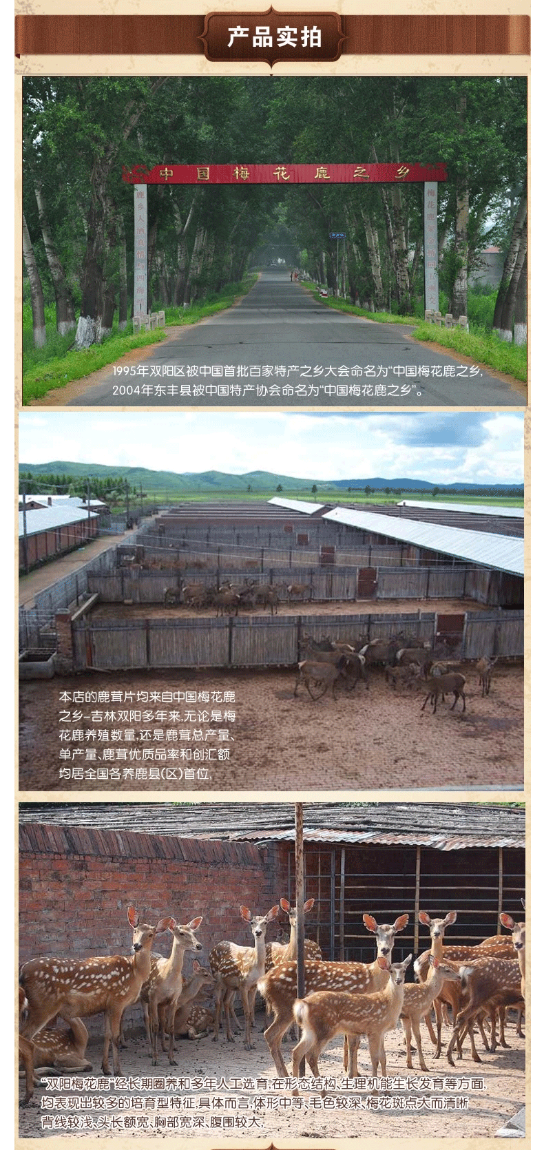 产自中国梅花鹿之乡双阳区,质地纯正,价格合理,精美礼盒包装,馈赠亲朋高档大气!