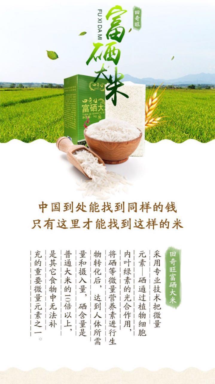 4、"田奇旺"富硒米采用老试加工工艺,小型鲜米机现磨这样保留85分以上的胚芽和胚乳最大成度的保留米质的营养成份。