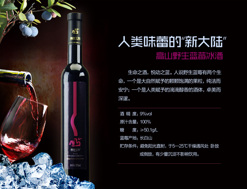 商品名称:长白工坊 长白山野生蓝莓冰酒375ml×2瓶豪华礼盒 蓝莓果酒红酒
