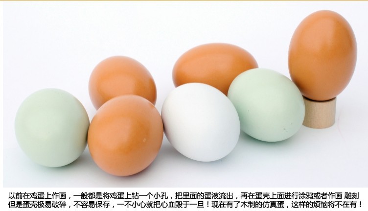 注意:鸡蛋为木质,不可以水洗,水洗会有掉色现象,尾单木质的,涂漆是可能有点瑕疵的或者小裂痕,本身的木质花纹,尾单剩下的,太挑剔的不要拍喔~