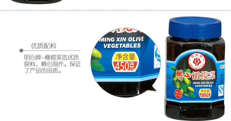 商品名称:正宗广东潮汕特产酱腌菜 庆香斋明心牌橄榄菜450g~12瓶