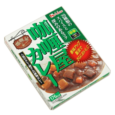 日本著名的ハウス食品出品的即食产品系列,是日本家喻户晓的即食食品,其中尤以咖喱屋系列的即食系列而广受欢迎。1份咖喱中配合29种调味品,是用白汤谨制炖煮而成的最受欢迎的西餐厅的咖喱,好吃就是那么简单,而且减少了烹调时候使用的油脂。
