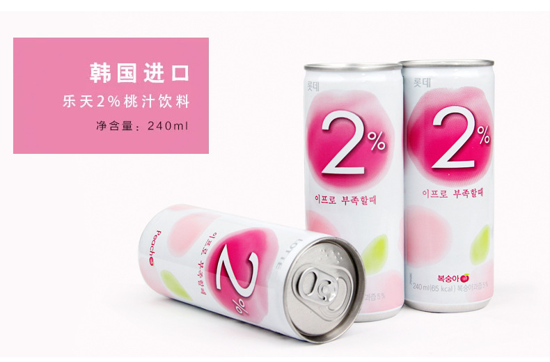 商品名称:乐天2%桃汁饮料240ml 韩国进口食品饮料 水蜜桃果汁/果味饮品