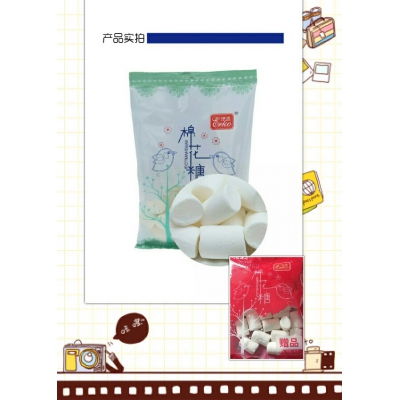 商品名称:90克伊高白色柱形棉花糖1*70袋,满20箱赠红袋烧烤棉花糖
