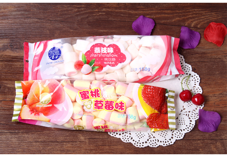 雪地棉花糖158g/包荔枝草莓味儿童休闲食品办公室零食qq软糖批发