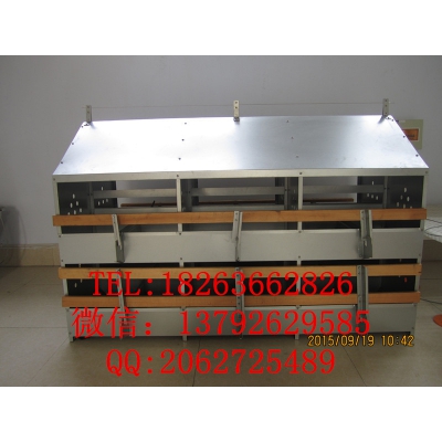 鸡用产蛋箱的尺寸是1500*990*1050mm,采用优质镀锌板做成的;厚度是0.5mm的热镀锌板,采用东北松木木条,防滑效果非常好;腿支架是3*3角钢,产蛋箱的结构为24穴上下2层结构,上盖,分墙为0.5厚的热镀锌板,山墙,连板,托鸡板为工程塑料一次注塑成型,前板为0.8厚的热镀锌板,支撑托架为1.5厚的热镀锌板冲压成型。中兴畜牧的产蛋箱也可以制作成12穴的产蛋箱,也是上下两层的,还可以接受加工定制,比如做成16穴的等等。