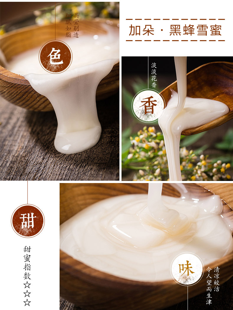 商品名称:加朵赋妍黑蜂雪蜜500G 天然无添加