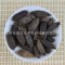 【性状】性状鉴别 果实呈长倒卵形至长圆形;长2-2.5cm,直径0.6-1cm。先端有齿状萼片4枚,向中央弯曲,基部具果柄残痕。表面棕褐色,粗糙,多细皱纹。果皮与种皮薄壳状。质脆,易破碎脱落,有的已无果皮或种皮,仅为种仁。种仁倒卵形,暗棕色,由两片肥厚的子叶抱合而成,子叶形如鸡舌,不规则抱合,中央有一条细杆状的胚根,由子叶的中央伸到较宽的先端。质坚硬,难破碎。气微香,味辛辣。 ①《别录》:“微温。”