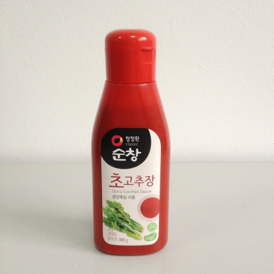 醋辣酱是上等韩国传统辣椒酱中加入优质芝麻、大蒜、生姜汁等多种配料精制而成的韩国传统酱料。其清爽的酸味、淡淡的甜味、浓郁的香味配合韩国辣椒酱的劲辣,可感受回味无穷的美味。