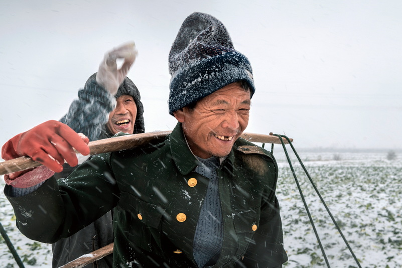 纪实类一等奖:《雪中收白菜》组照之一 作者:陈爱民