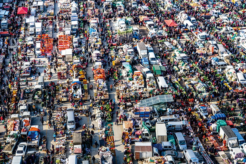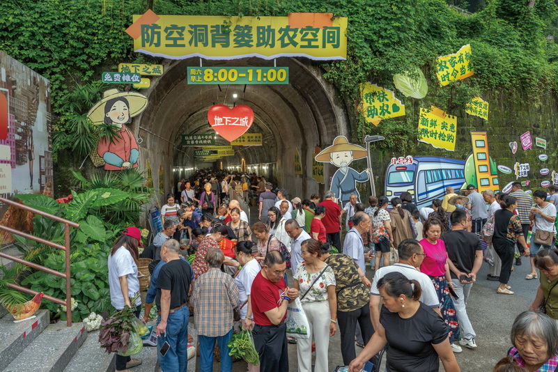 纪实类三等奖:《地铁带来的防空洞助农菜市场》组照之一 作者:平凡