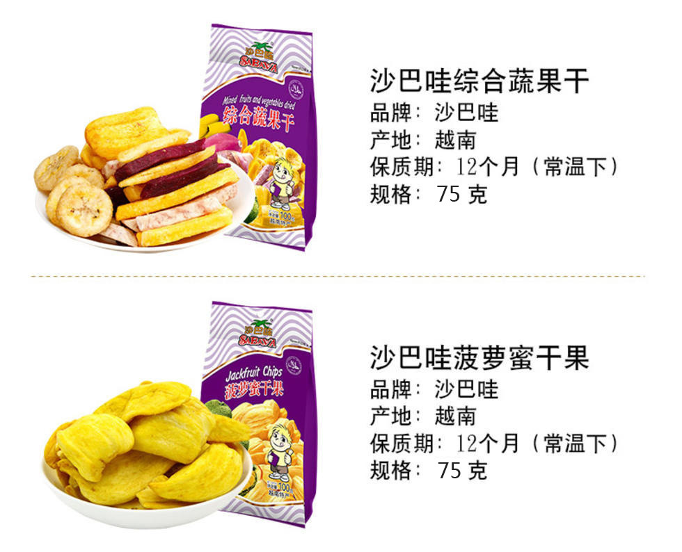 越南进口 沙巴哇 综合蔬果干菠萝蜜干果芭蕉干芋头条
